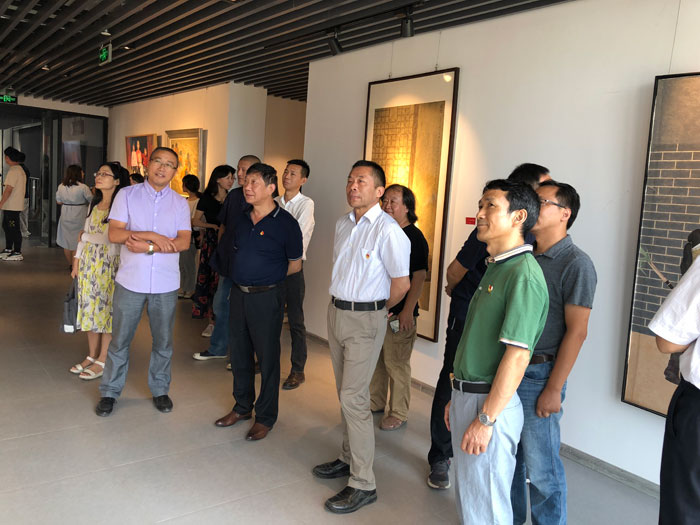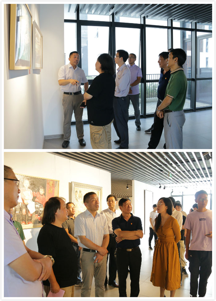 开幕式后,与会人在美术设计系党总支书记罗耀东的带领下参观画展,并与参展人、师生代表座谈,回顾作品创作过程和创意思路,交流观展心得体会,分享对“不忘初心、牢记使命”主题教育的思考与认识。