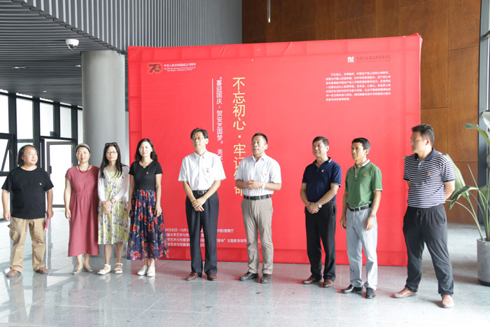 由安徽大学艺术与传媒学院党委主办、学院“不忘初心、牢记使命”主题教育领导小组办公室及美术设计系承办的“喜迎国庆,贺安艺圆梦”美术作品展于9月30日上午在美术楼二楼展厅隆重开幕。学院党政班子成员、主题教育领导小组办公室成员、各系部主要负责同志出席开幕式并参观画展。