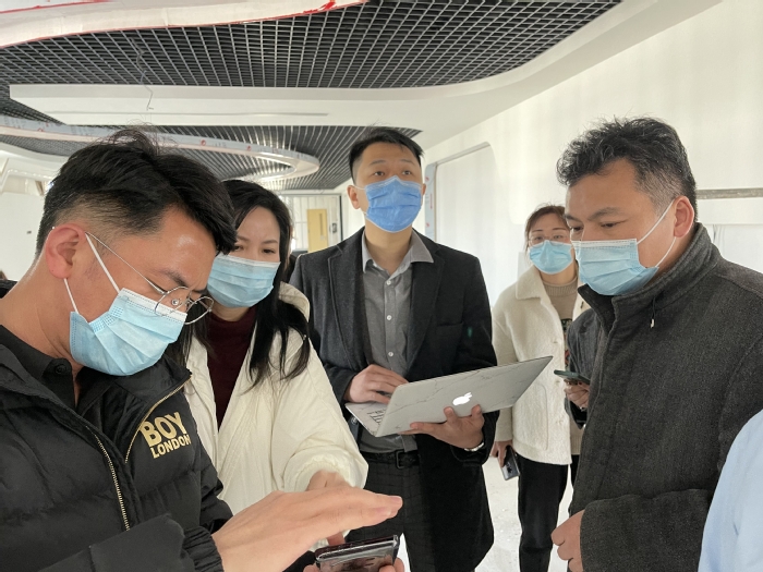 会上,曹晓富对文字展示内容提出了建议,要求不断凝练、精简。施工方代表上海图萌科技有限责任公司就党员活动中心的部分设计图方案进行了修改。王琍琍表示,活动中心建成之后,我系将结合专业特色,积极组织教师和学生共同制作一批红色短片,不断充实VR新媒体党员活动中心的视频展示内容。会后,双方实地考察了施工现场情况。