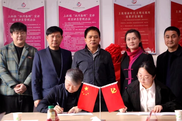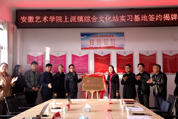 11月15日下午,安徽艺术学院实习与就业基地签约揭牌仪式在合肥市肥西县上派镇综合文化站“派河春晖”举行。校教务处处长韩大国,音乐学院党总支书记、院长李伟,肥西县委常委、宣传部部长杨娜,宣传部副部长、县文联主席董世一及上派镇党委书记陈起灼等共同参加签约仪式。