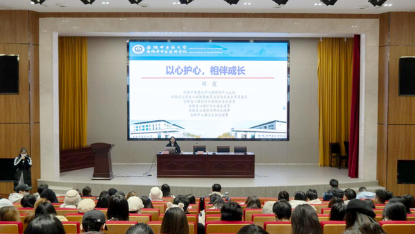 12月12日,传媒学院在综合楼五楼报告厅举办“以心护心,相伴成长”心理健康主题讲座。安徽省大学生心理健康教育与咨询专委会常务委员、安徽中医药大学心理咨询中心主任胡霞受邀主讲。传媒学院党总支副书记张雷雷、校心理健康教育与咨询中心副主任戴宇峰出席。