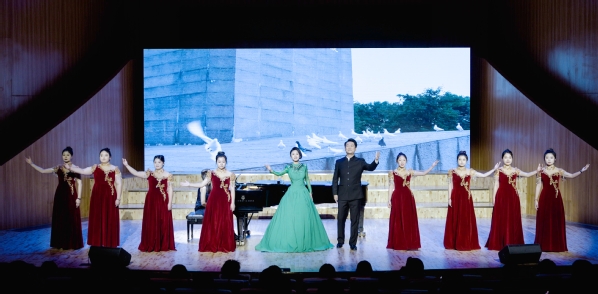 表演形式丰富,有男声独唱《松花江上》《金瓶似的小山》,女声独唱《歌唱二小放牛郎》《我的祖国》《我爱你中国》《在希望的田野上》,女声二重唱《走进新时代》,领唱与合唱《十送红军》《不忘初心》《时代号子》,合唱《石库门的灯光》《百年守望》,钢琴八手联弹《保卫黄河》等。