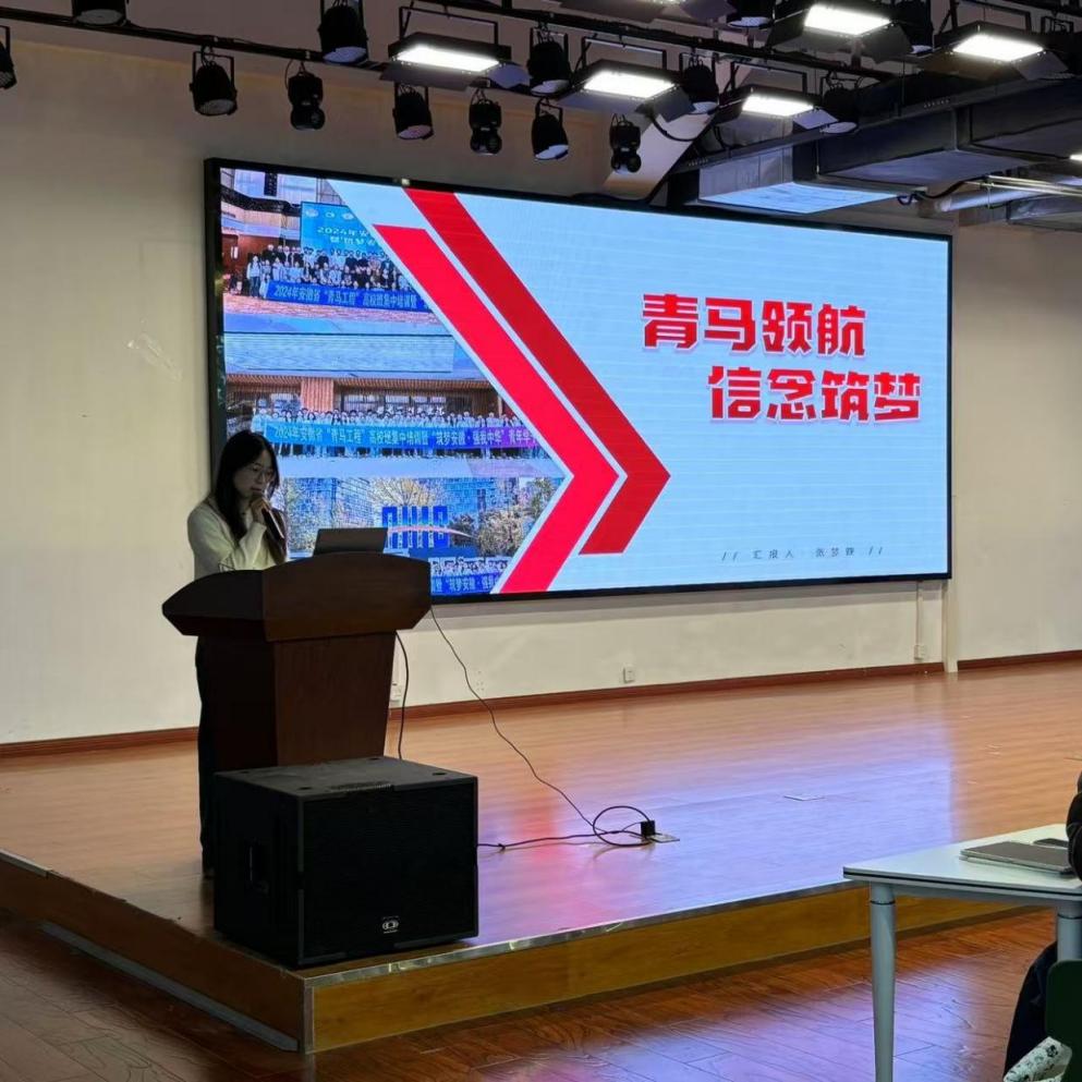 会上,参加安徽省“青马工程”高校班归来的张梦蝶、钱勇同学分享学习感悟。本次“青马工程”高校班培训共为期4天,来自省内117所高校的200余名青年大学生骨干参加活动。培训班前往安徽创新中心、三只松鼠股份有限公司、芜湖赭山铁画博物馆、芜湖古城等地实践调研,让学员们加深了对安徽科技发展成就的了解,感受到了中华优秀传统文化的独特魅力。其中,党的二十届三中全会《决定》核心要点速览和人工智能与未来技术发展两场专题报告令张梦蝶、钱勇感受最深。他们表示,通过培训不仅提升了自身的理论水平,更明确了作为青年学生的使命与责任,要学以致用,将所学知识和理论应用到实际工作中,为奋力谱写中国式现代化安徽篇章作出青春贡献。